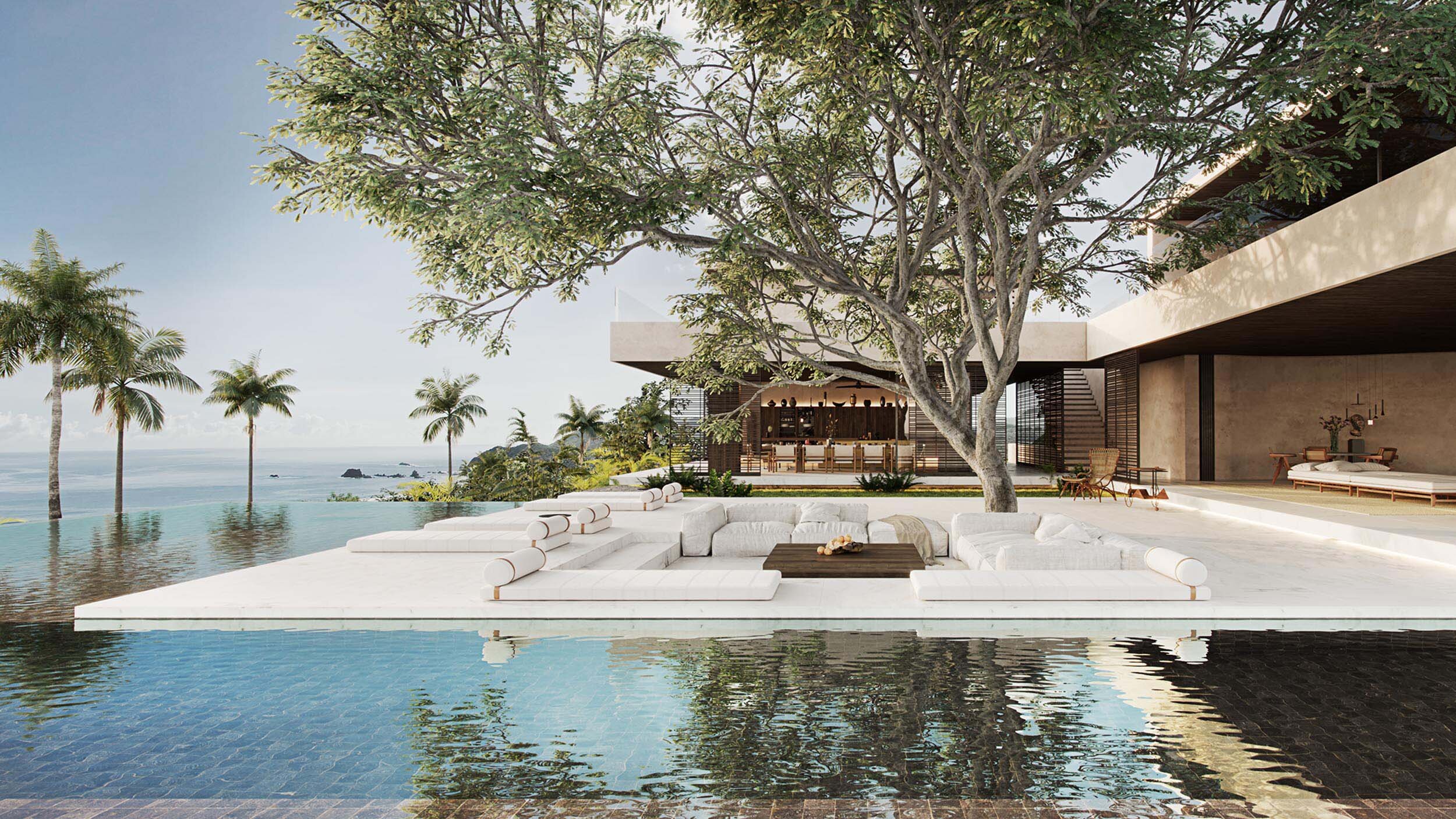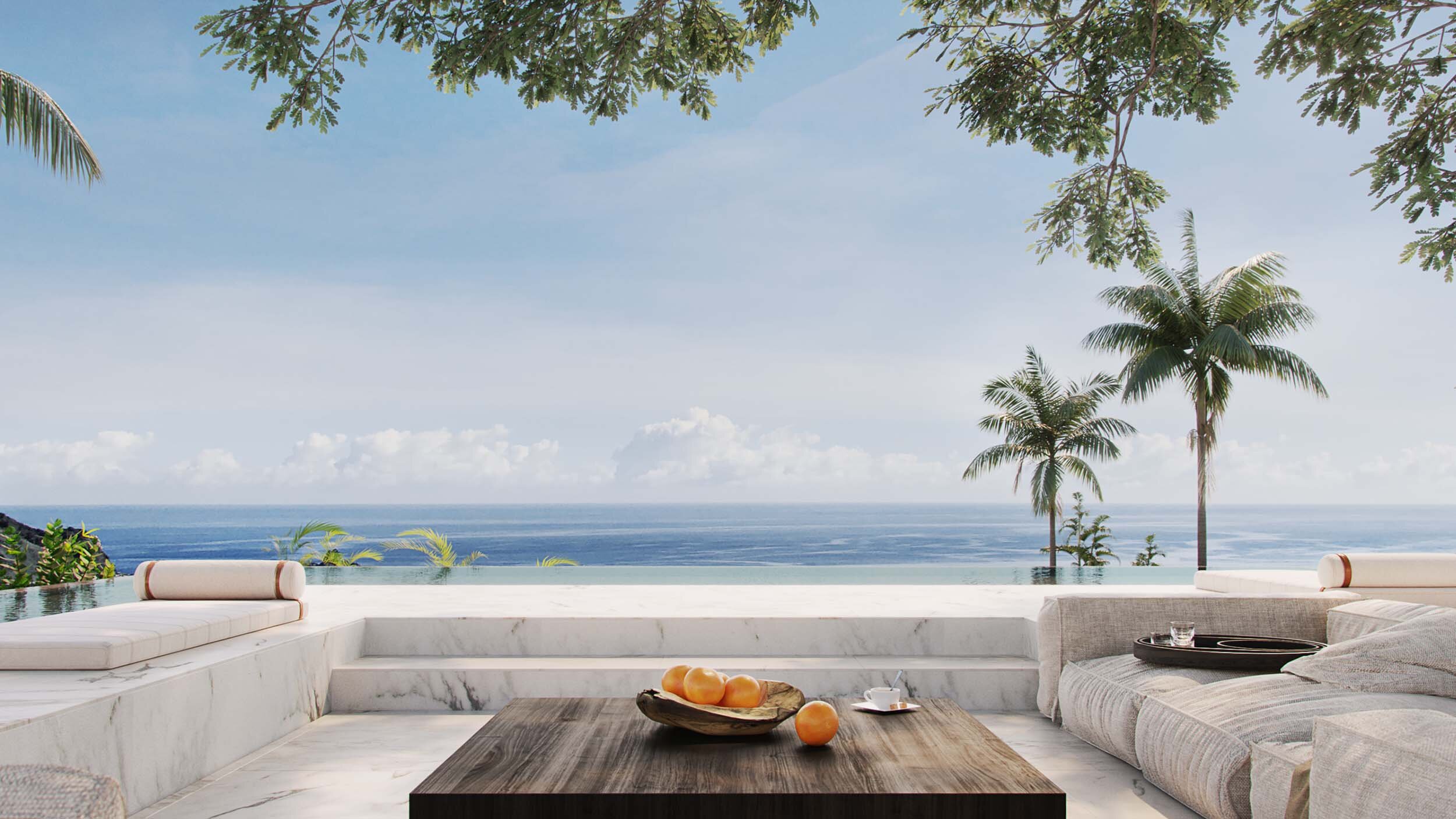 Enjoy the spectacular sunsets from the 100sqm infinity pool that wraps around two sides of the living area. Depths vary from 1.3m — 2.7m.