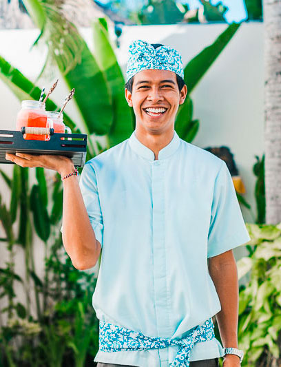 Villa manager Your Manager is responsible for the overall operation of your villa including staffing and assuring your satisfaction. Should you have any extra requirements at all, our villa manager will be more than happy to assist you both in and out of the villa. Villa attendants The Villa Attendants are responsible for maintaining high standards of cleanliness and evening turn-down services. The day shift is typically from 6.30am to 4pm. These hours are flexible and depend on your needs, and can be adjusted to fit your schedule. The second shift works from 2pm until 10pm, and the third from 11pm – 7am. Don’t be afraid to ask staff to pop out to pick something up for you. We’re happy to help you on your holiday. The kitchen Our head chef, assisted by a cook prepare elegant local and international dishes from breakfast to dinner.